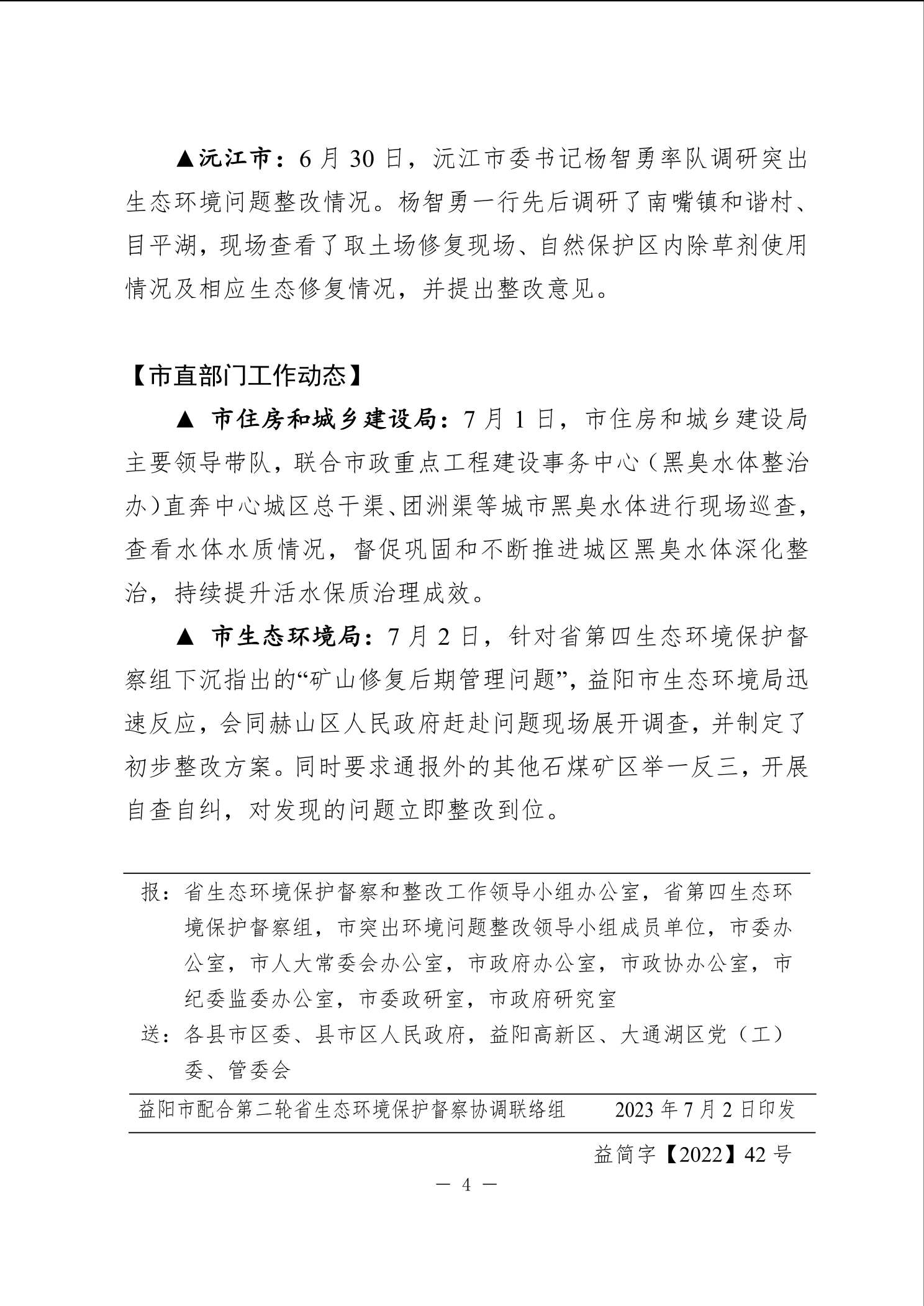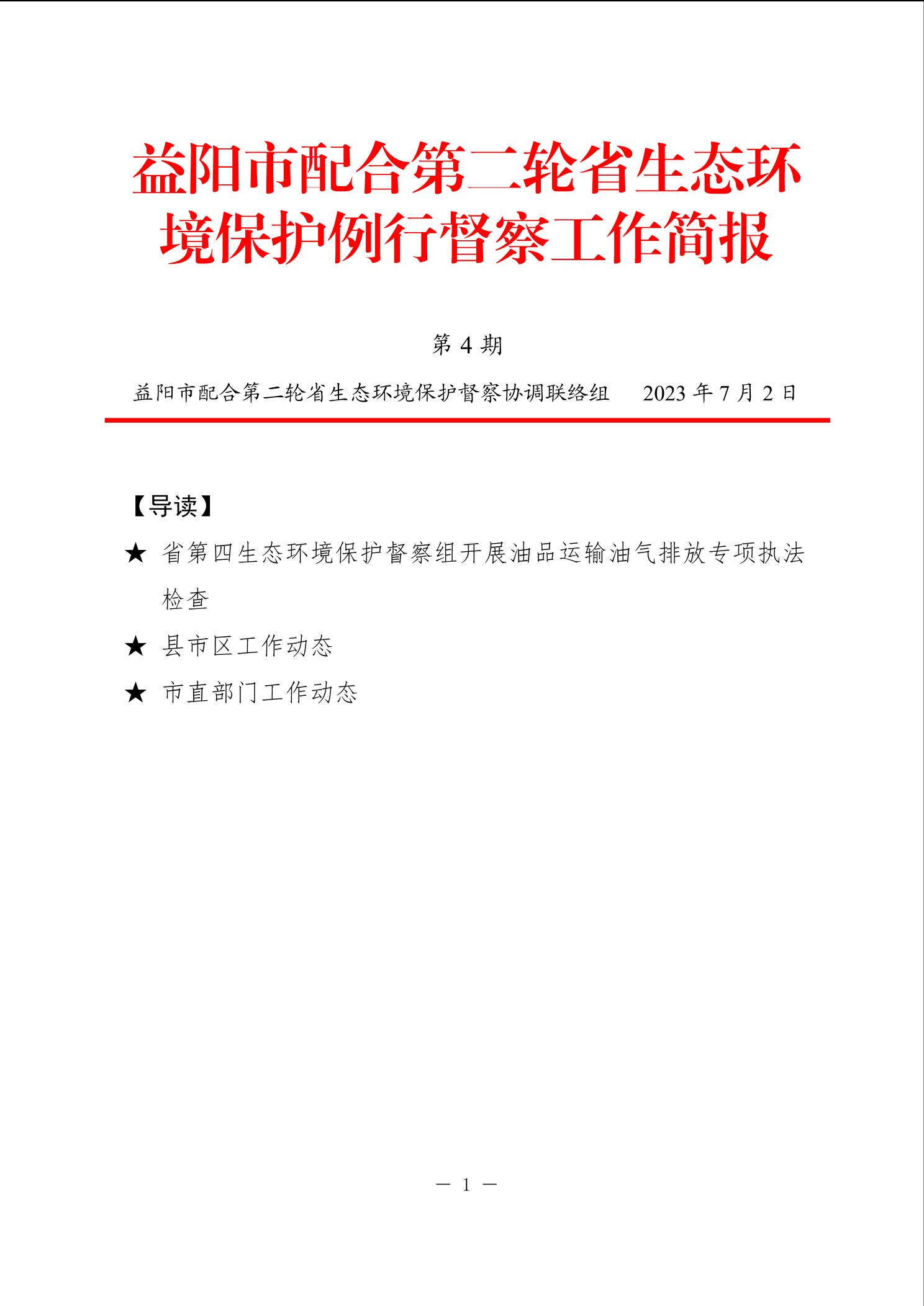 益阳市配合第二轮省生态环境保护例行督察工作简报(第4期)