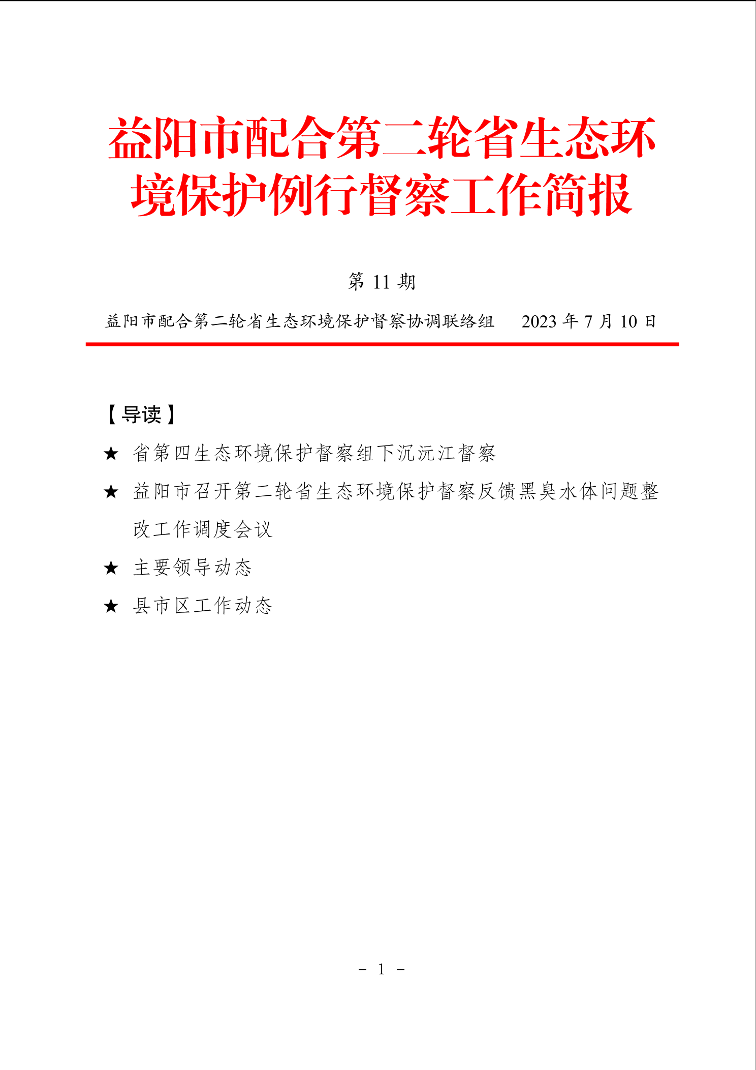 益阳市配合第二轮省生态环境保护例行督察工作简报(第11期)