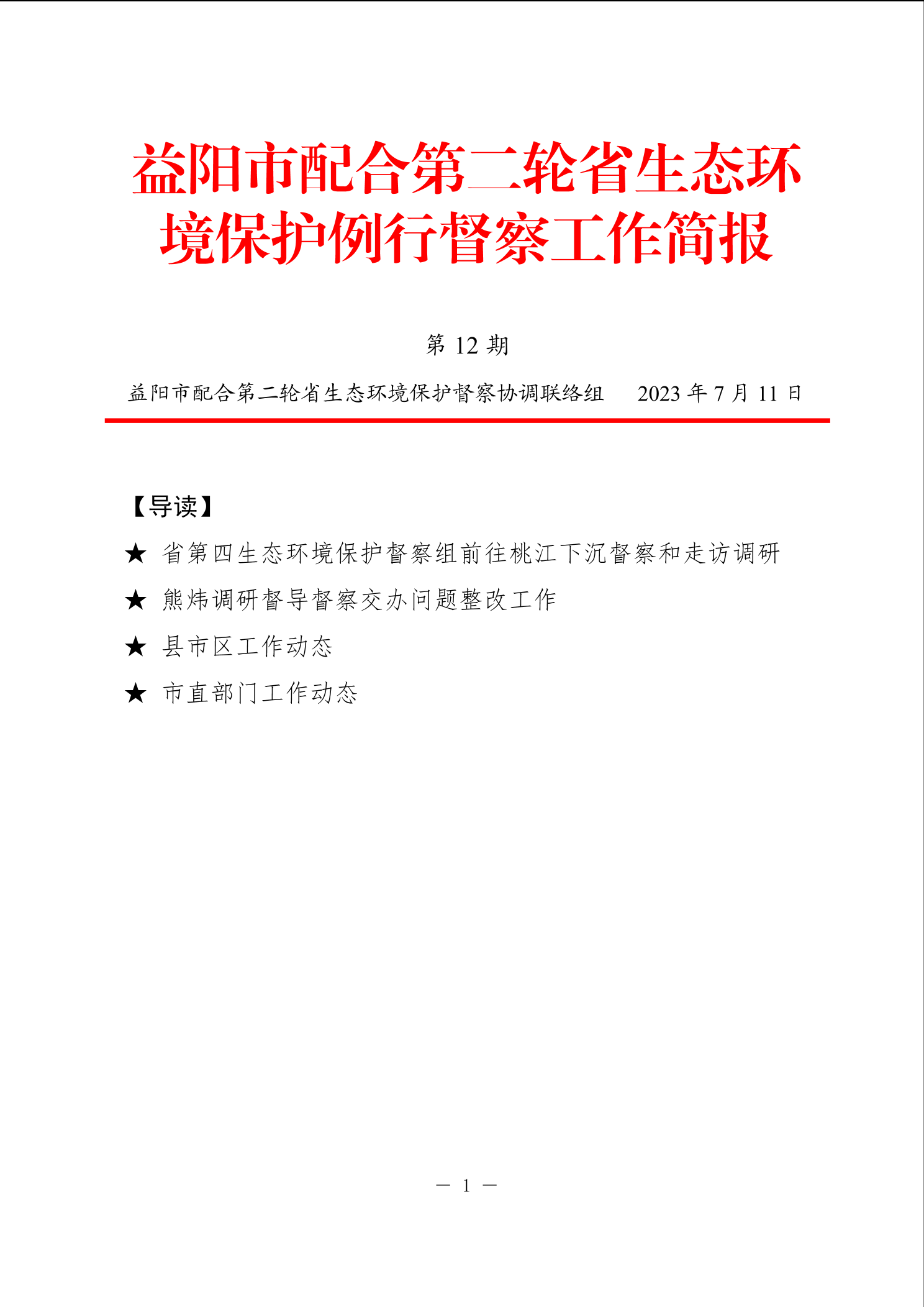 益阳市配合第二轮省生态环境保护例行督察工作简报(第12期)