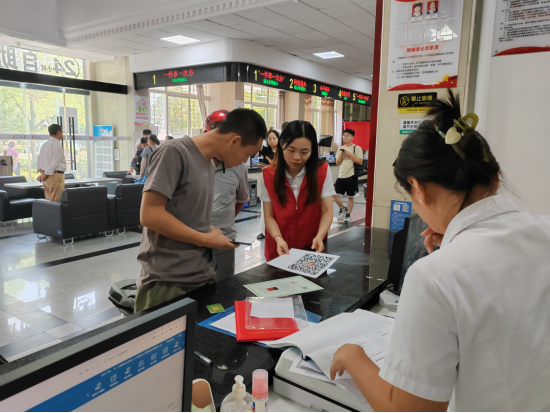 志愿者们利用早上群众集中办事的时间段来到政务中心门口及办事窗口前,主动为群众介绍“湘易办”APP的线上功能,手把手指导有意向的群众下载安装、注册和使用“湘易办”APP,有效提升“湘易办”APP的覆盖面和推广率,为满足群众足不出户“快办事、办好事”的需求奠定了基础。