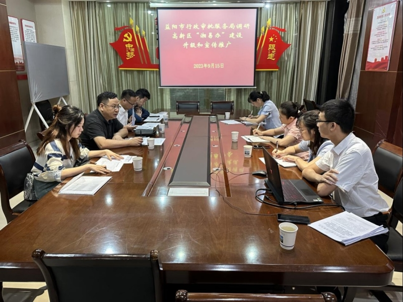 9月15日,市行政审批服务局“湘易办”建设升级和宣传推广工作专班到政务中心,对高新区“湘易办”宣传推广、电子证照汇聚和旗舰店建设工作等进行调研。
