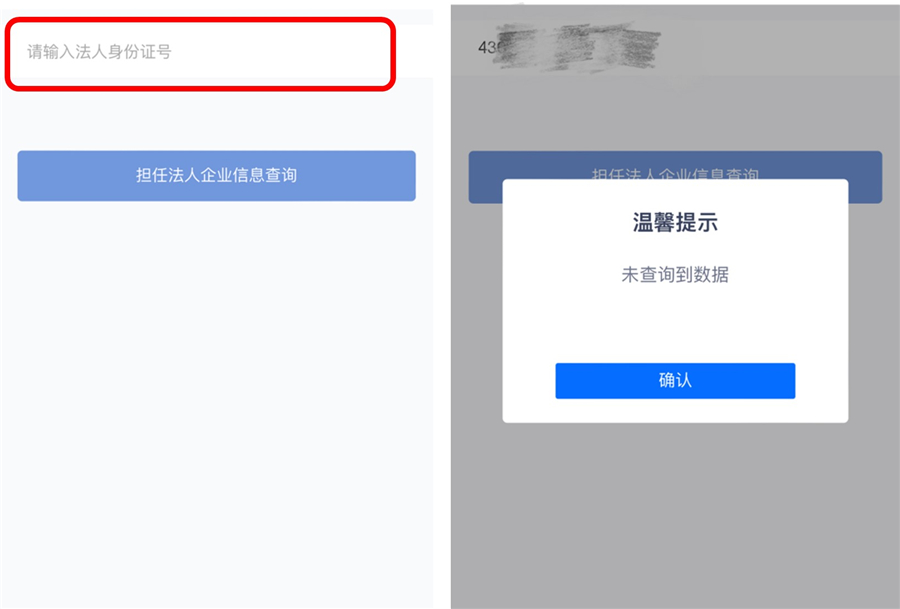 选择“担任法人企业信息查询”,输入身份证号,即可查询名下是否有担任法人的企业。