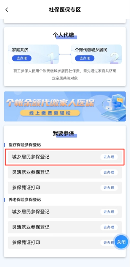 温馨提醒:如没有参保城乡居民医保,需先找到“我要参保”模块,在医疗保险参保登记分类下进入城乡居民参保登记服务,完成参保才能缴费。
