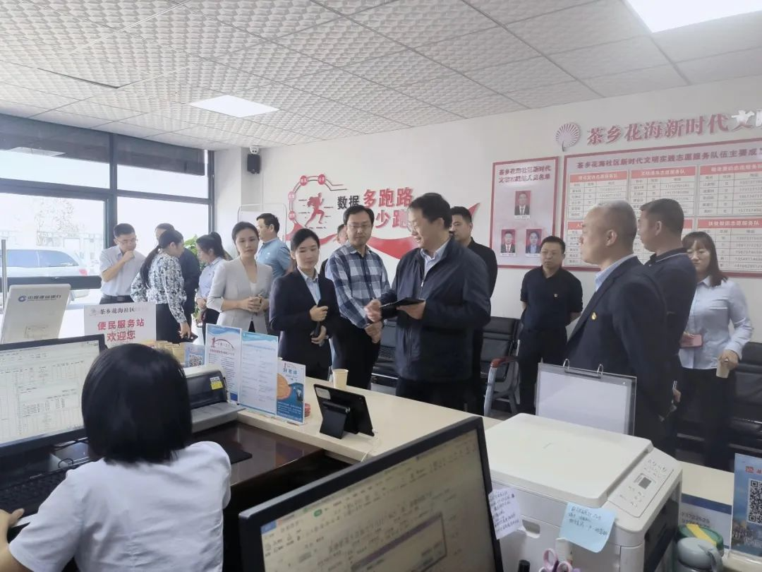 ▲调研组在安化茶乡花海便民服务站调研