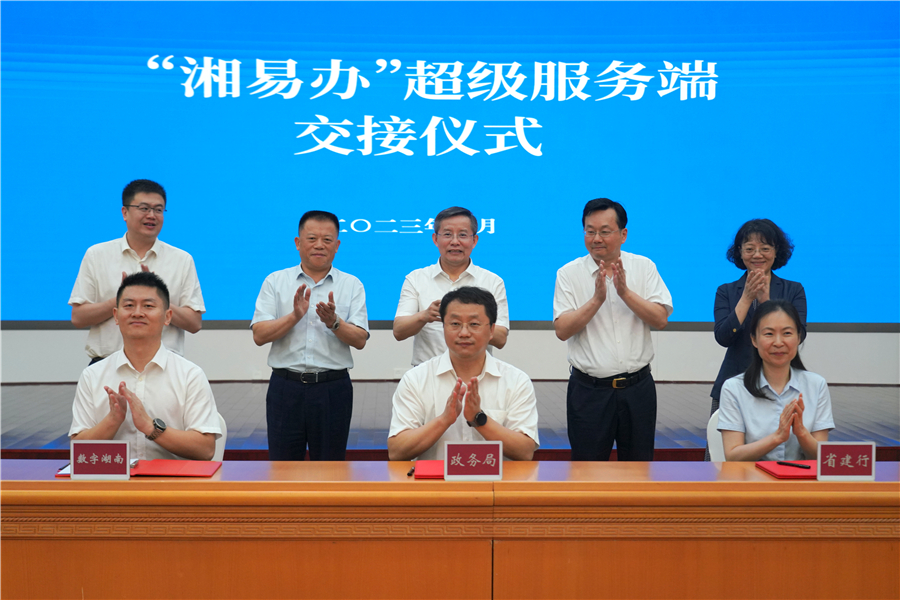 6月30日,“湘易办”超级服务端交接仪式在长沙举行。湖南省政务管理服务局、建行湖南省分行、数字湖南有限公司三方签署交接协议,标志着“湘易办”超级服务端正式交由数字湖南有限公司开展建设运维运营工作。