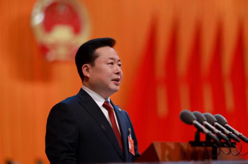 国徽高悬,红旗鲜艳,会场气氛庄重而热烈。