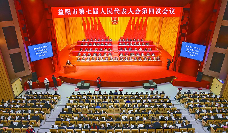 受市第七届人民代表大会常务委员会委托,市人大常委会主任彭建忠向大会报告工作。彭建忠说,一年来,市人大常委会感悟思想伟力,强化政治引领,牢牢把握新时代人大工作的正确方向;聚焦良法善治,增强立行质效,不断夯实益阳现代化建设的法治支撑;服务中心大局,提升监督实效,始终扛牢助推高质量发展的职责担当;牢记为民初心,发挥代表作用,持续深化全过程人民民主的益阳实践;坚持守正创新,不断优化完善,全力打造具有益阳辨识度的工作品牌;铸魂强基固本,激发机关活力,切实提升依法履职尽责的能力水平。坚持用党的创新理论统揽和指导人大工作,扎实开展主题教育,大兴调查研究,积极推动“四下基层”,深入开展“走找想促”,常委会机关完成调研课题25个,推动解决问题235个;以“小快灵”立法方式,制定《益阳市中心城区资江两岸风貌管控若干规定》十二条,为中心城区资江两岸风貌管控提供了有力法治保障;持续推进代表联络站“建管用”升级, 415个联络站点全年接待群众1.1万人次,督促解决了一批群众关心关注的问题;进一步完善代表建议交办和督办工作机制,市七届人大二次会议以来提出的193件代表建议,全部按时办结,结果满意率达94.3%;不断巩固提升民情通达专线、民情民意专报、代表之窗专栏“三专”平台,切实做到“民有所呼、我有所应”;始终注重实践、探索完善,扎实开展部门服务抽样评、财政审计整改评、司法百案质效评,“三评”工作获得多方肯定。