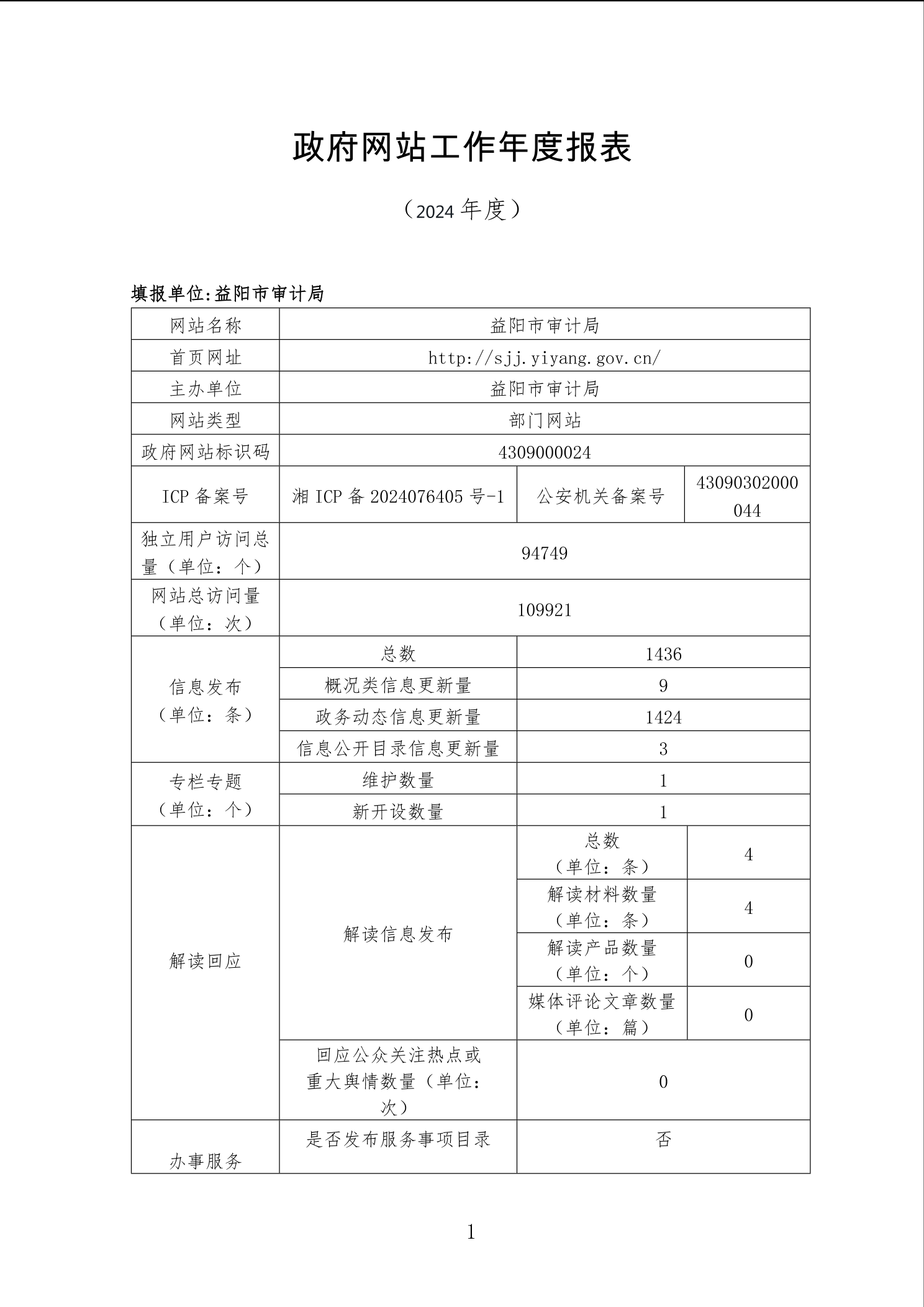 2024年益阳市政府网站工作年度报表专栏