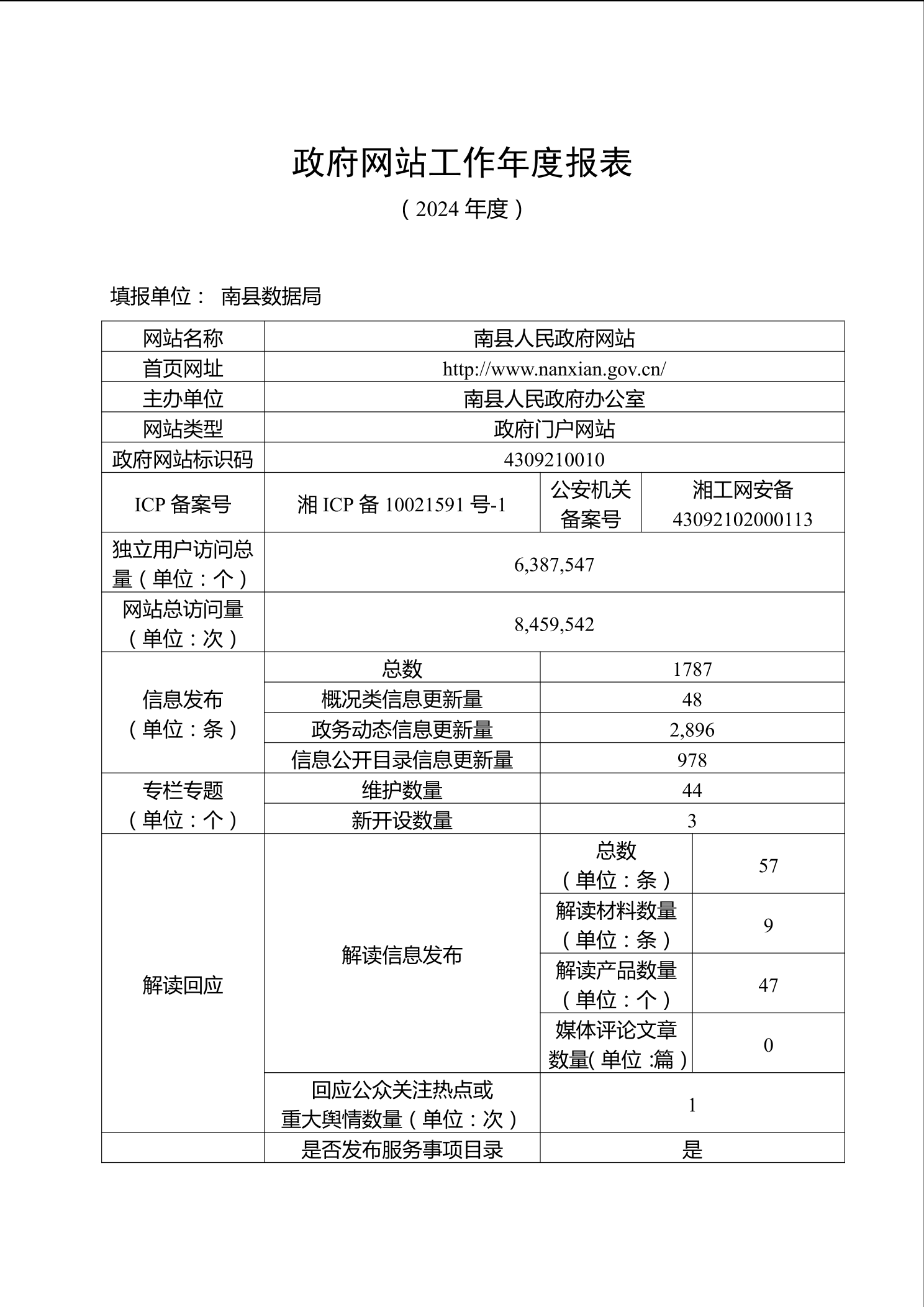 2024年益阳市政府网站工作年度报表专栏