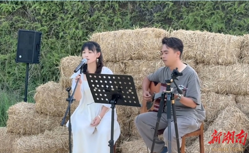 5月3日傍晚,益阳市赫山区谢林港镇清溪村草坪上,一场“初夏的浪漫在这里”清溪落日音乐会唱响。数百名游客躺在柔软的草地上,听着民谣和流行乐,看夕阳慢慢落下。“五一”假期,清溪文学村N+玩法一键解锁,游客从早“嗨”到晚。