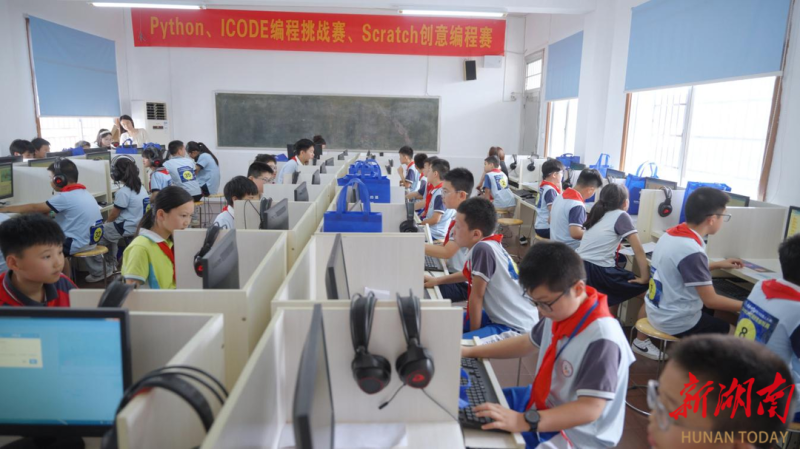 创意编程赛场上,同学们聚精会神地操作电脑。谭宏 摄
