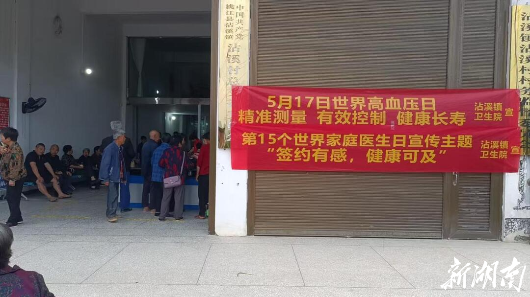 晨光微露,益阳市桃江县沾溪镇沾溪村村委已排起长队,当地老人正有序等待2025年度免费健康体检。