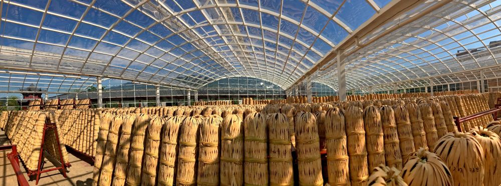 (白沙溪茶厂的千两茶晾晒现场。新华社发)