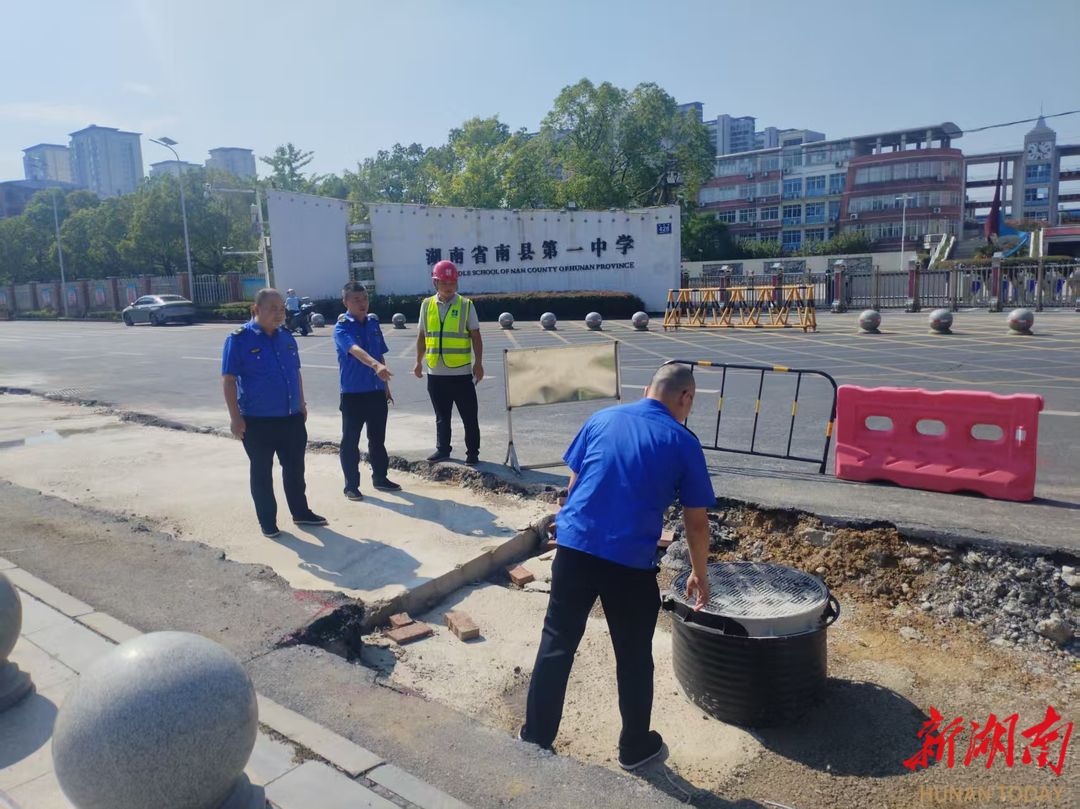 近日,南县城管执法局执法大队联合行政审批股组成专项督导小组,深入南县第一中学等城区校园周边路段,对下水道改造工程开展 “进度攻坚” 行动。执法人员现场对照施工图纸,逐段核查开挖作业面,要求施工单位针对校园周边区域制定倒计时施工排期表,明确“8月底前完成路基修复,9月1日前全面恢复通行”的硬指标。