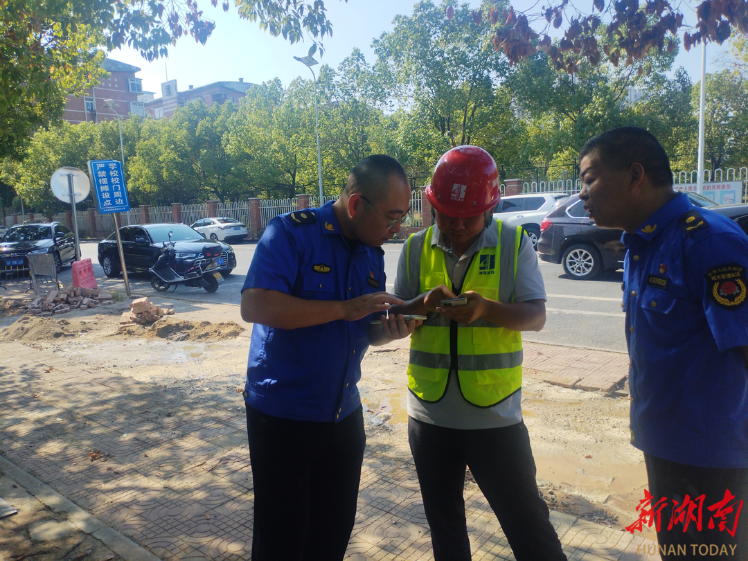 在施工现场,城管执法人员与湖南省第六工程有限公司南县施工负责人逐项核对《占道施工许可》信息,重点督导安全围挡规范设置、渣土清运时限等细节。针对学校周边人流密集特点,特别要求优化施工时序 —— 早高峰时段暂停重型机械作业,同步预留临时人行通道。“既要抓工程进度,更要守好民生底线。”执法大队负责人说,通过“日调度、周研判”机制,确保9月开学前校园周边道路畅通、安全、干净。施工单位负责人表示一定会按照城管部门工作要求落实,切实履责。