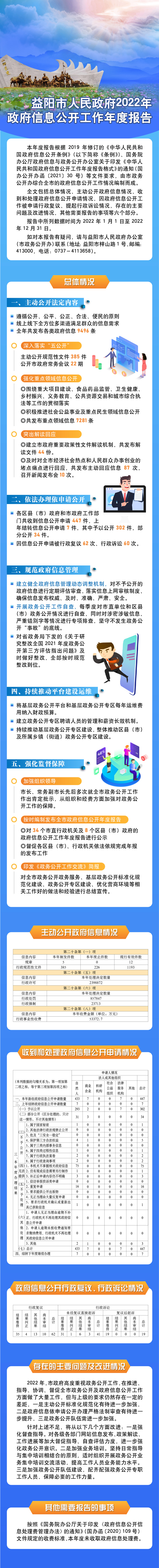 本年度报告根据2019年修订的《中华人民共和国政府信息公开条例》(以下简称《条例》)、《国务院办公厅政府信息与政务公开办公室关于印发<中华人民共和国政府信息公开工作年度报告格式>的通知》(国办公开办函〔2021〕30号)等文件要求,由市政务公开办综合全市的政府信息公开工作情况编制而成。全文包括总体情况,主动公开政府信息情况,收到和处理政府信息公开申请情况,因政府信息公开工作被申请行政复议、提起行政诉讼情况,存在的主要问题及改进情况,其他需要报告的事项等六个部分。报告中所列数据时间为2022年1月1日至2022年12月31日。如对本报告有疑问,请与益阳市人民政府办公室(市政务公开办)联系(地址:益阳市梓山路1号,邮编:413000,电话:0737-4113658)。
