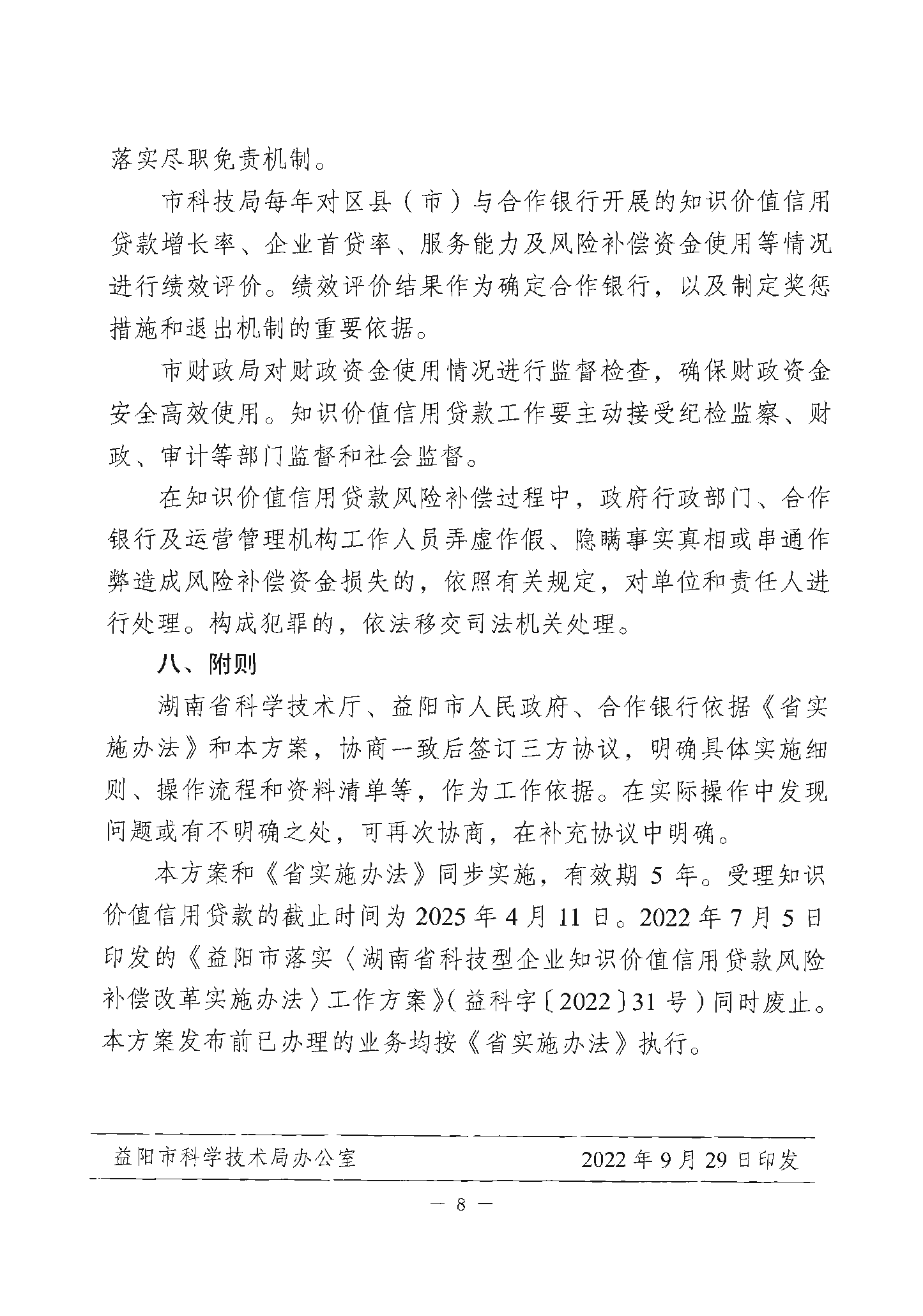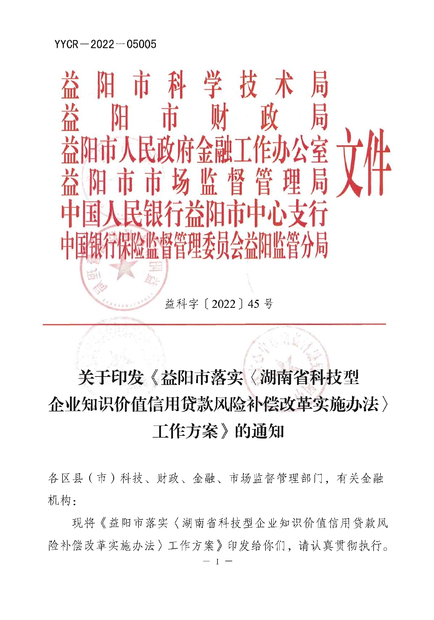 关于印发《益阳市落实湖南省科技型企业知识价值信用贷款风险补偿改革实施办法工作方案》的通知