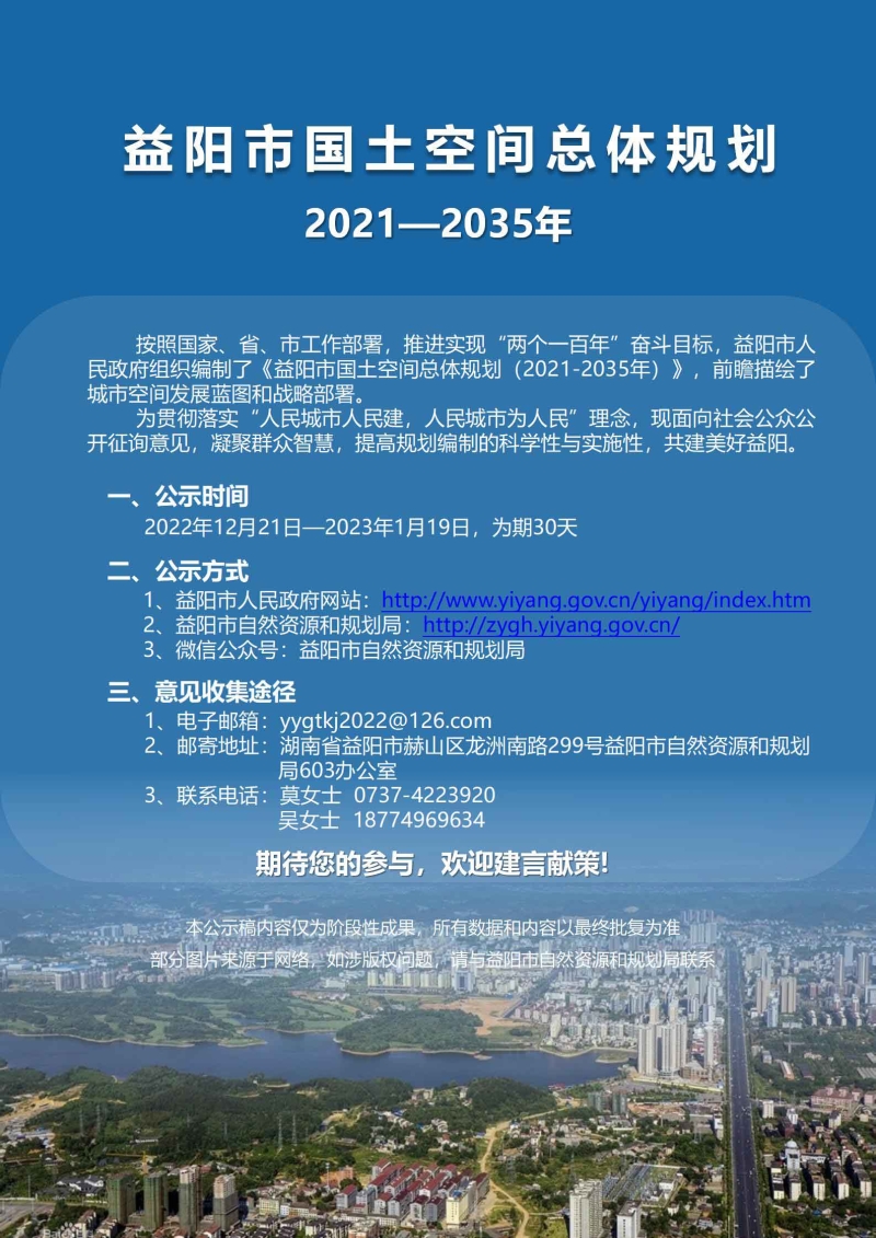 关于公开征集《益阳市国土空间总体规划(2021-2035年)》意见的公告