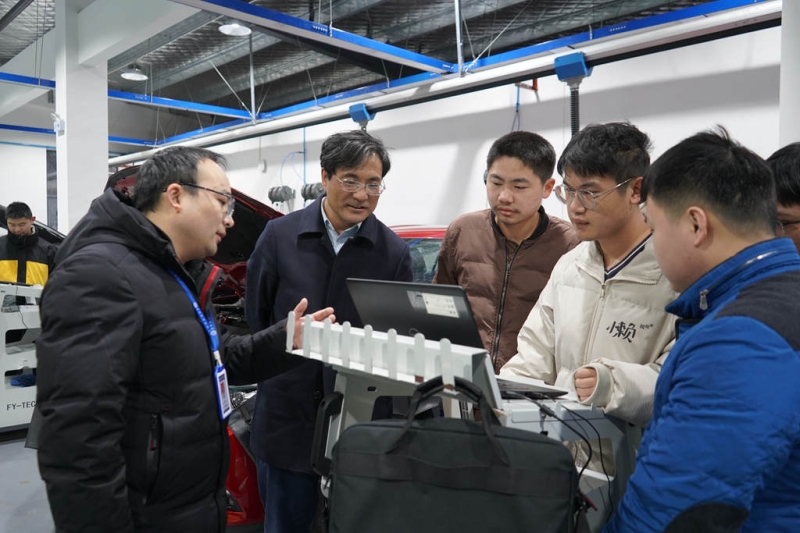 座谈会之前,李永军深入到学院一汽马自达校企实训基地、湖南省船舶焊工考证基地和大学生创新创业孵化基地等教学实训场所,察看了学院教学设备设施,并与正在上课的教师、学生进行了简短交流。