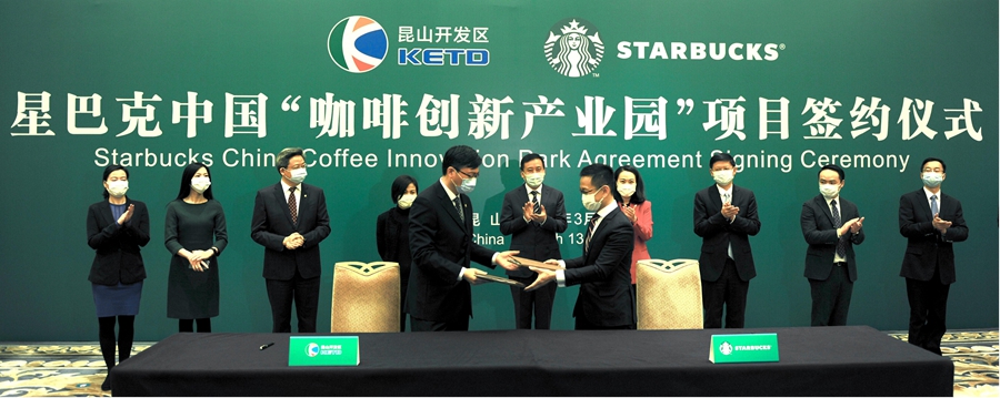 国际知名咨询公司世邦魏理仕,多次向美国星巴克集团大力推荐昆山并陪同考察决策建议,成为投资方选址的决定性因素。2020年3月,星巴克咖啡创新产业园项目正式签约落户,该项目投资额10.9亿元,是美国500强企业去年在中国投资的首个产业项目,投产后年产值将达到11亿元。