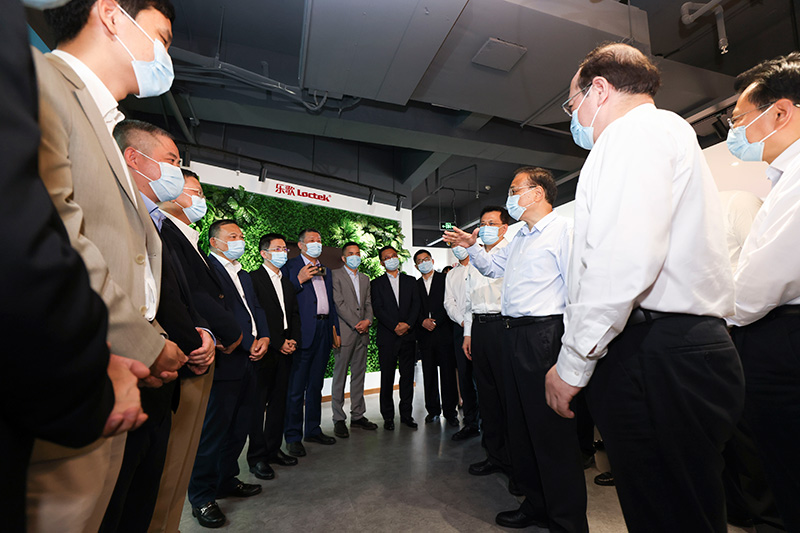 在乐歌公司,李克强察看创新产品,与公司在欧洲的海外仓工作人员视频交流,勉励企业多开发消费者欢迎的新产品,发展壮大新动能,更好发挥海外仓作用,带动更多国内产品拓展国际市场。