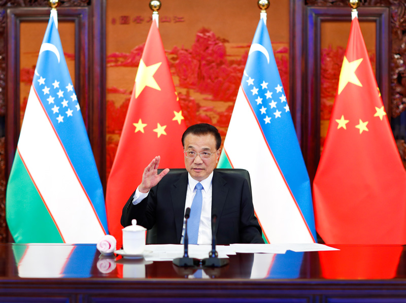 国务院总理李克强6月8日下午在中南海紫光阁应约同乌兹别克斯坦总理阿里波夫举行视频会晤。