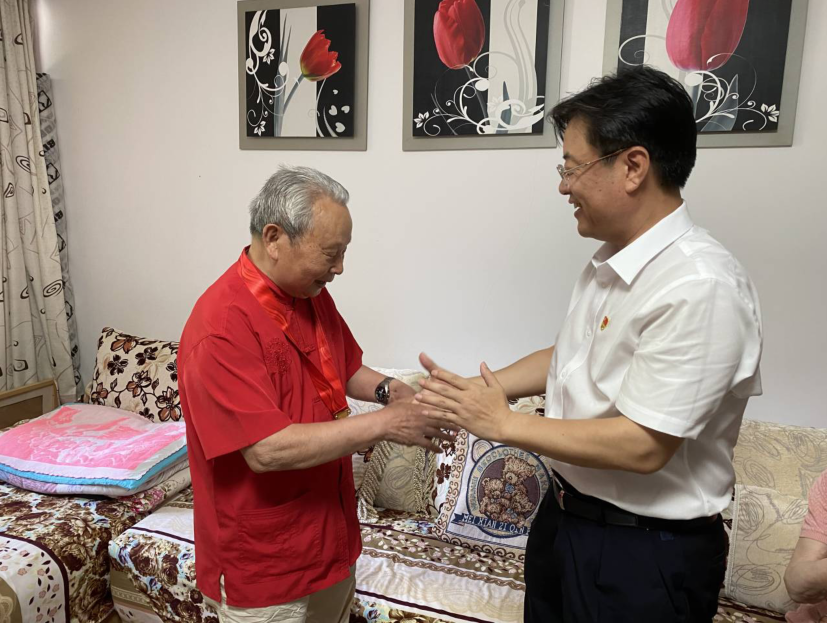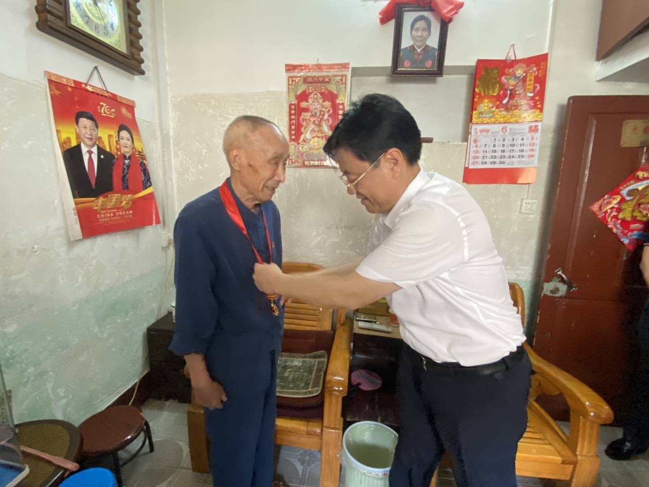 今年86岁的彭长春老人是一名离休老干部,也是“光荣在党50年”纪念章获得者。在彭长春家中,张值恒亲切询问了老人的身体和生活情况,并为老人佩戴好“光荣在党50年”纪念章。张值恒说,彭老退休后仍然坚持努力学习,发挥自己余热,是我们学习的榜样,希望他保重身体,继续为党的事业贡献力量。