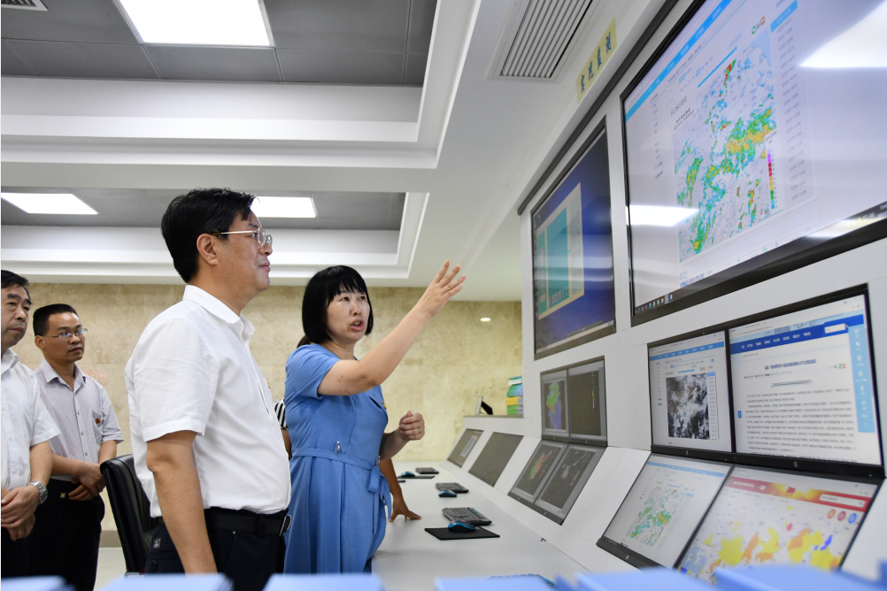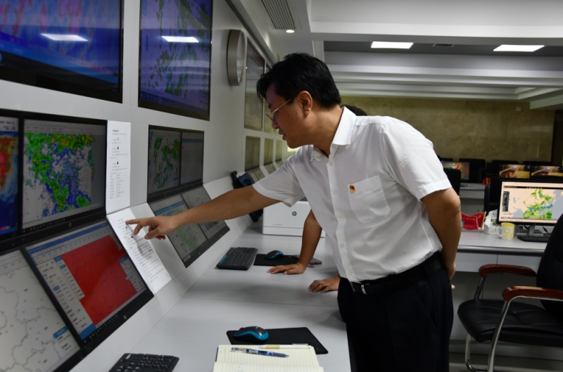 在市气象局,张值恒通过监测系统屏幕查看降雨量实况、天气雷达回波等气象监测信息,听取了汛期气候趋势预测分析及近期气象工作情况汇报,详细了解当前天气情况、气象信息发布和气象现代化建设等工作开展情况。