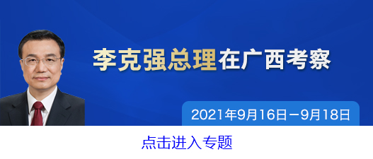 9月16日至18日,中共中央政治局常委、国务院总理李克强在广西壮族自治区党委书记鹿心社和自治区主席蓝天立陪同下,在玉林、南宁考察。他强调,要坚持以习近平新时代中国特色社会主义思想为指导,贯彻新发展理念,构建新发展格局,大力推进改革开放,保持经济运行在合理区间,增进民生福祉,推动高质量发展。