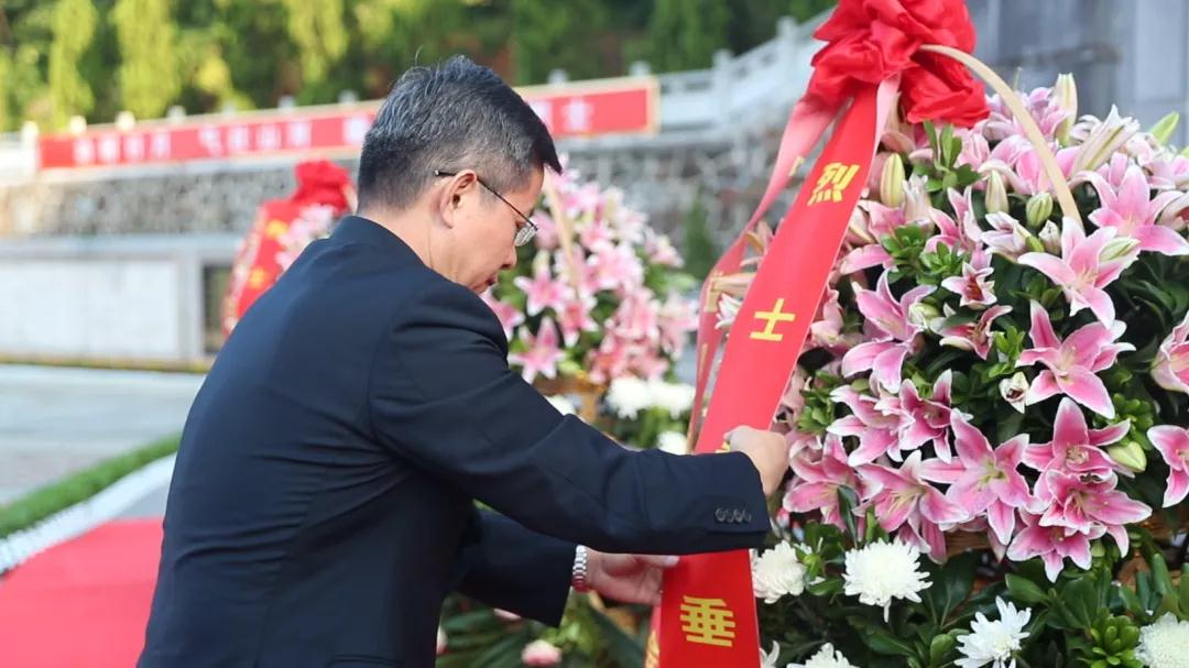 随后,瞿海拾级而上,来到纪念碑前,仔细整理花篮缎带。接着,参与活动的党员干部与各界代表排列整齐,缓步来到纪念碑前,献上鲜花,瞻仰纪念碑和英烈墙,追思先烈们艰苦奋斗的革命历程。