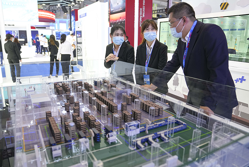 参观者在中国—东北亚博览会现场了解5G智能物流仓储技术展示(9月23日摄)。新华社记者 许畅 摄