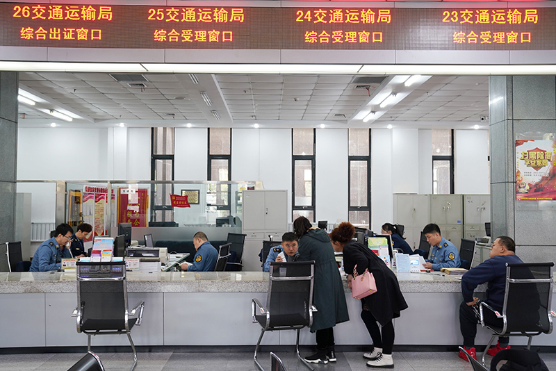 在黑龙江牡丹江市营商环境建设监督局办事大厅,市民在审批窗口办理手续(2019年9月18日摄)。新华社记者 王建威 摄