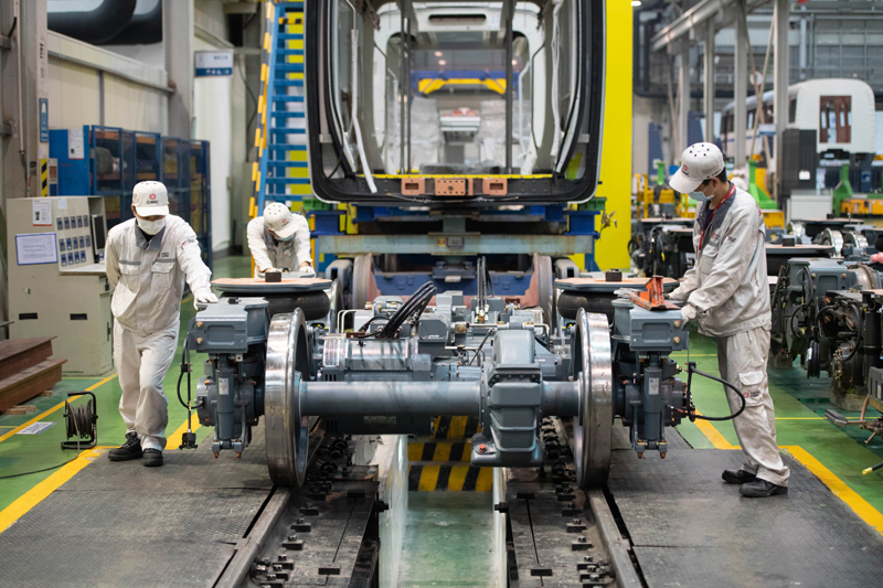 工作人员在位于湖南省株洲市的中车株机城轨事业部总成车间工作(2020年4月28日摄)。新华社记者 陈思汗 摄
