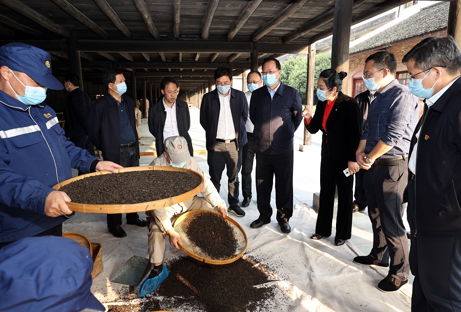 27日,毛伟明在中茶湖南安化第一茶厂调研。