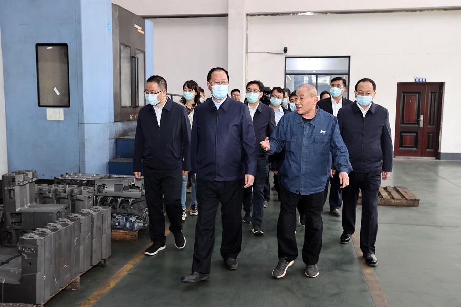 28日,毛伟明在安乡县凯斯机械公司调研。