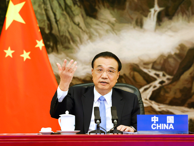 11月25日,国务院总理李克强在北京人民大会堂出席第十三届亚欧首脑会议,并发表引导性讲话。会议以视频方式举行。新华社记者 黄敬文 摄
