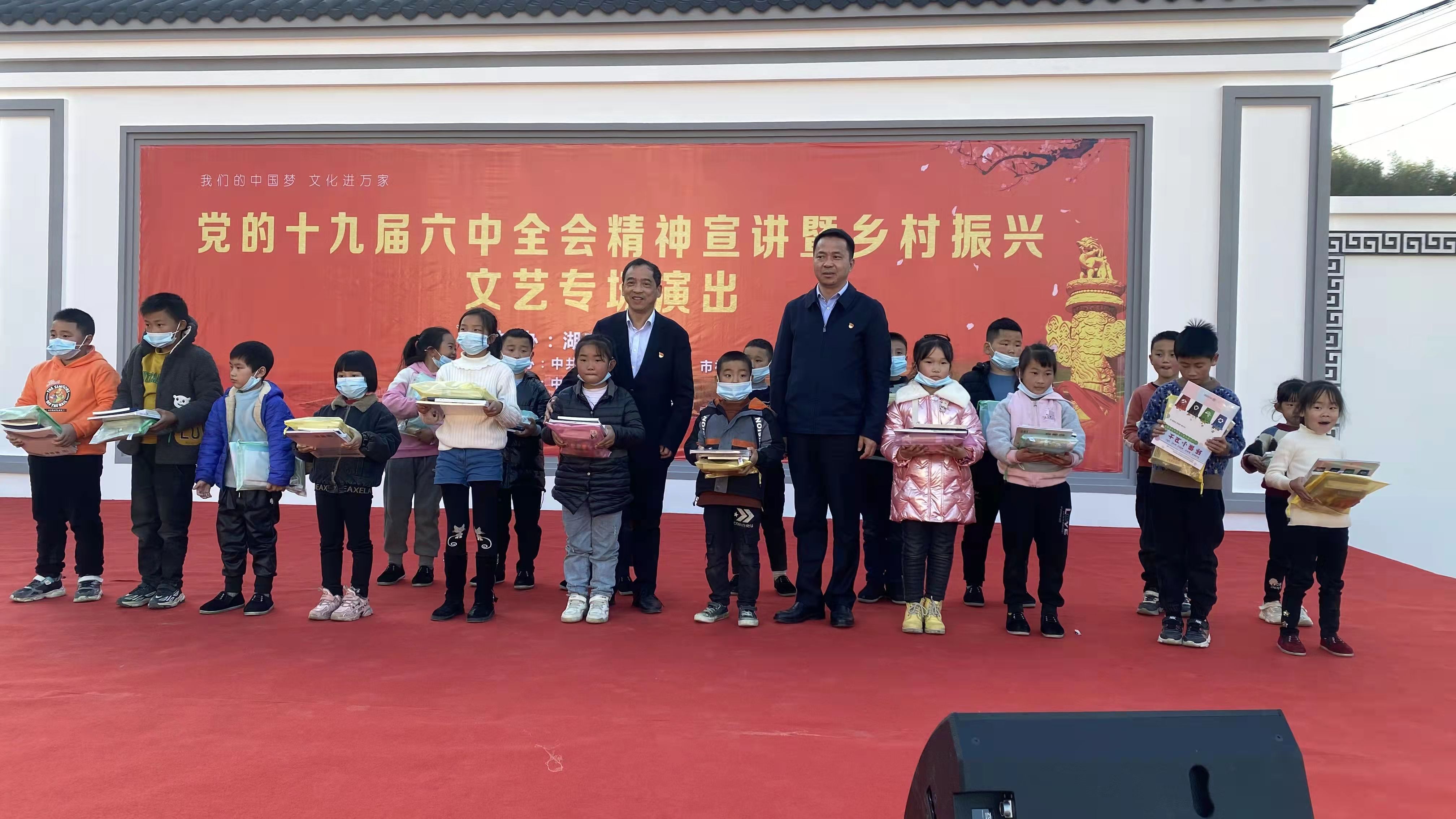 活动现场,省社科联向当地小学捐赠了图书和学习用品;市营养学会联合市疾控中心,委派营养健康专家为当地群众进行了义务健康咨询和血压、血糖检测,发放了控油壶、限盐勺等健康用品200余套(件);市楹联学会的书法艺术家现场书写了百余副对联,提前为父老乡亲送上春节的祝福。市委宣传部组织市轻骑兵艺术团举行的“乡村振兴”主题文艺表演将活动推向了高潮,演职人员带来的歌舞、民乐合奏、花鼓小调等节目赢得了观众阵阵掌声。