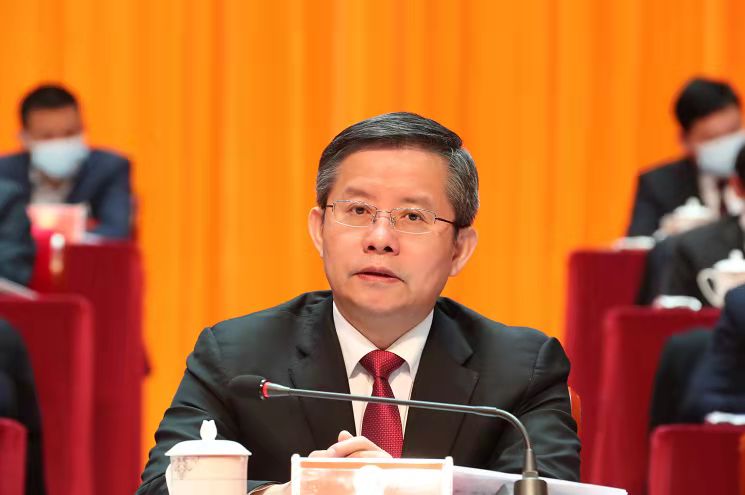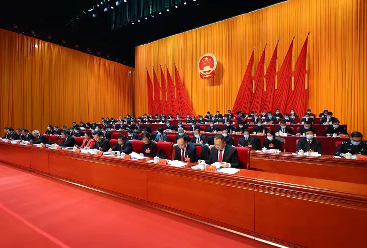 在热烈的掌声中,陈竞代表市人民政府向大会作工作报告。报告分为三大部分:一是过去五年主要成就和2021年工作回顾;二是今后五年发展思路和主要目标;三是2022年工作安排。