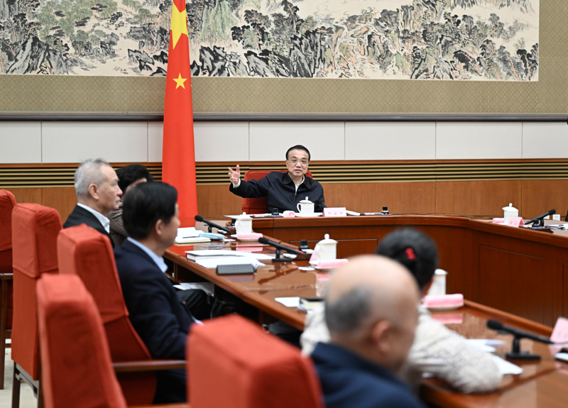 1月21日,中共中央政治局常委、国务院总理李克强主持召开座谈会,听取教科文卫体界人士和基层群众代表对《政府工作报告(征求意见稿)》的意见建议。中共中央政治局常委、国务院副总理韩正出席。新华社记者 谢环驰 摄