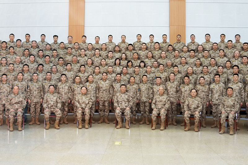 随后,习近平同中部战区海外维和分队进行视频通话。来自维和步兵营、工兵分队、医疗分队、直升机分队的同志们整齐列队,依次向习近平报告。习近平向他们,并向我军正在海外执行任务的全体官兵表示慰问。习近平强调,要忠实履行维和使命,为维护世界和平贡献更多中国力量,向世界展示中国军队良好形象。维和任务区环境复杂,要注意加强安全防范,搞好疫情防控。