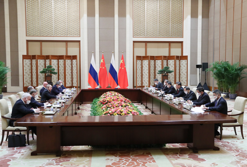 新华社北京2月4日电(记者 温馨)国家主席习近平2月4日下午在北京钓鱼台国宾馆同俄罗斯总统普京举行会谈。两国元首在热烈友好的气氛中就中俄关系以及事关国际战略安全稳定的一系列重大问题深入充分交换了意见。