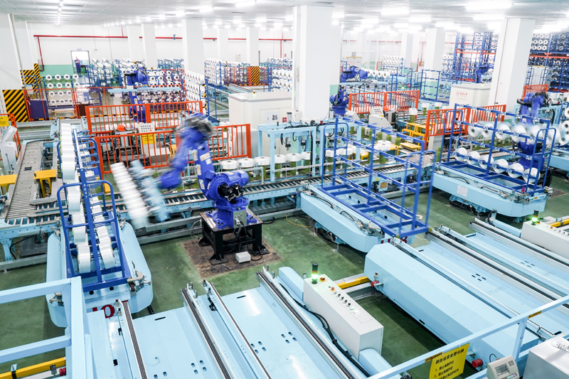2021年5月14日,在位于江苏省苏州市吴江区盛泽镇的一家智能车间,机器人在车间内自动作业。新华社记者 李博 摄