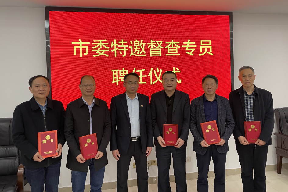 为进一步强化中央、省委、市委重大决策部署和领导指示批示落实的督查督办工作,3月9日,市委特邀督查专员聘任仪式举行。市委常委、市委秘书长黄道安为曹超军、张冠夫、何宇田、高日平、贵秋民等5名受聘担任市委特邀督查专员的同志颁发聘书。
