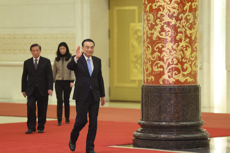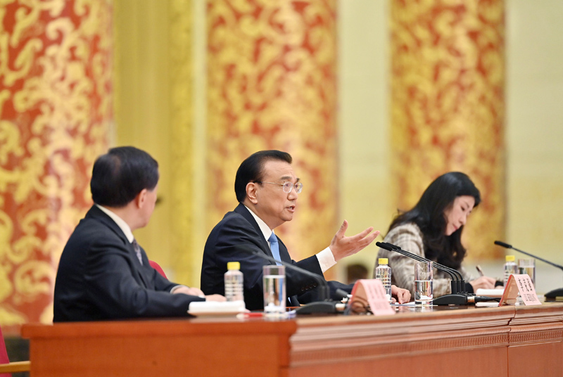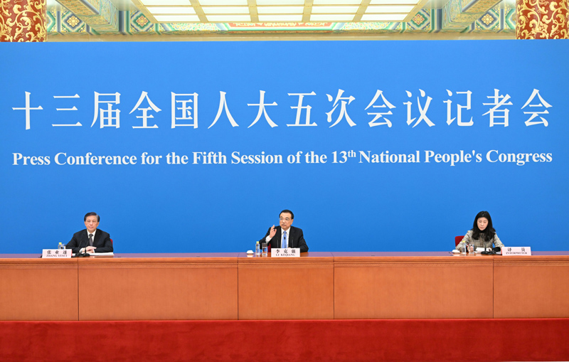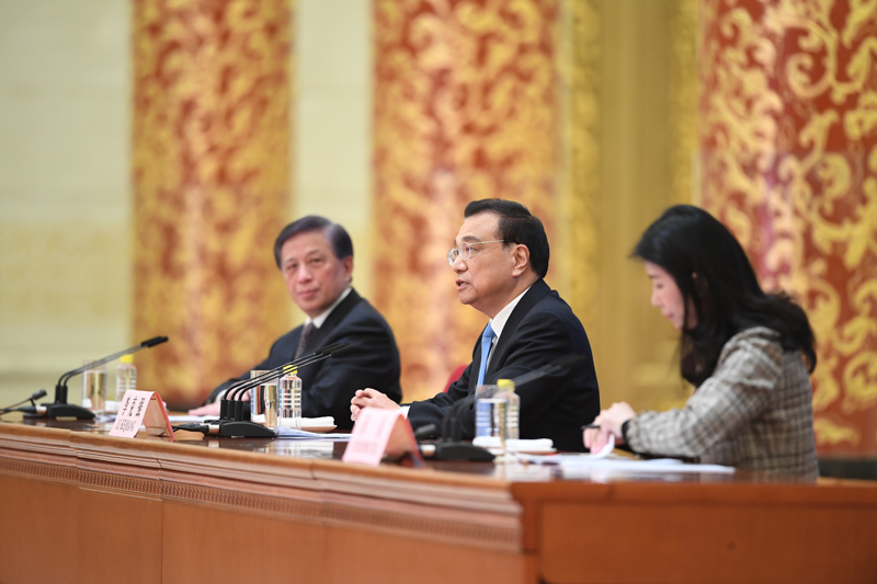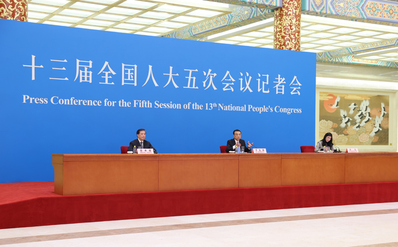 3月11日上午,十三届全国人大五次会议在北京人民大会堂举行记者会,国务院总理李克强应大会发言人张业遂的邀请出席记者会,并回答中外记者提问。新华社记者 丁林 摄