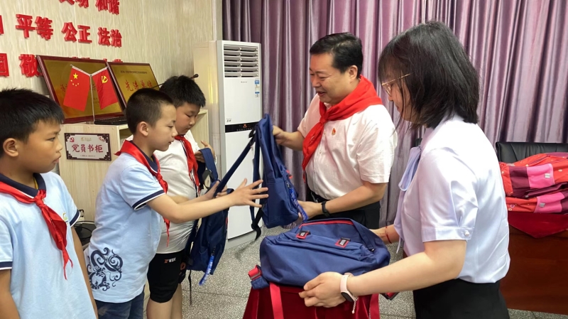 会前,熊炜一行来到龙洲小学,参观学校少先队活动阵地,走访慰问少先队员,并为励志少先队员代表送上书包文具。熊炜寄语广大少先队员:要从小树立远大志向,培养优良的品格,好读书、读好书,以优秀人物为榜样,刻苦学习,为未来奠定坚实基础,并祝小朋友们六一儿童节快乐。