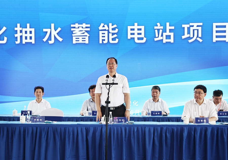 6月29日上午,湖南安化抽水蓄能电站项目开工,省委副书记、省长毛伟明出席并宣布开工。
