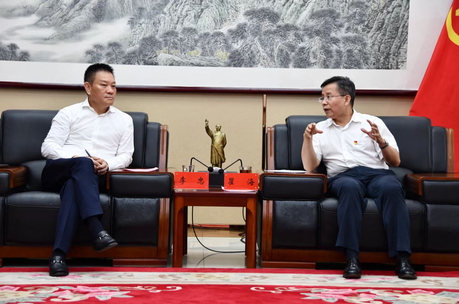 7月7日,市委书记瞿海与来益考察的国联水产集团董事长李忠、珠海农控集团董事长张凡一行座谈,共商产业高质量发展事宜。副市长何军田、益阳高新区党工委书记汪军出席座谈会。