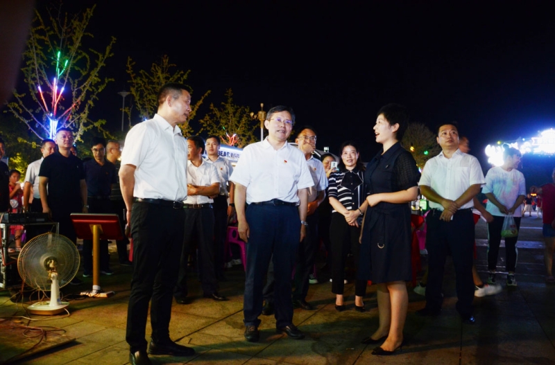 20时50分,瞿海一行来到南县罗文涂鸦艺术村调研“夜经济”情况。此时,在夜市游玩的人络绎不绝。今年以来,南县抢抓国省稳住经济一揽子政策措施机遇,以“罗文夜总汇”专题文化夜市为引爆点,全力激活夜间消费市场。在现场,瞿海与商户、摊主、游客亲切交流,详细了解摊位经营、市场管理、环境卫生等情况,听取南县“夜经济”发展情况介绍。瞿海指出,发展“夜经济”,可以促进就业,刺激消费,扩大内需,推动经济发展,更好满足人民群众的美好生活需要。要发挥稻虾文化作用,打响南县稻虾米等特色品牌,植入地方文化元素,不断丰富产品业态,提升管理服务水平,保障食品安全、用电安全、消防安全、防疫安全,努力把“罗文夜总汇”打造成为乡村夜间经济示范区。要发挥夜市平台作用,引进益阳各县(区、市)特色产品,充实商品种类,带动产业发展,助力乡村振兴。要唱响《山乡巨变》等主题曲,全方位展现经济社会发展成就,让人民群众充分感受家乡的巨大变化,谱写山乡巨变、大美湖区新篇章。