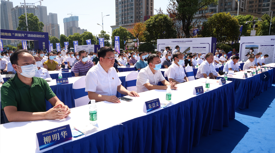 9月6日,2022年湖南省“质量月”活动启动仪式暨质量基础设施“一站式”服务平台揭牌仪式在我市举行。省质量强省领导小组副组长、办公室主任、省市场监督管理局党组书记、局长向曙光部署2022年湖南省“质量月”活动并宣布活动启动。市委书记瞿海出席活动。省市场监督管理局党组副书记、副局长钱俊君宣读省委副书记、省长毛伟明对2022年湖南省“质量月”活动的批示。市委副书记、市委统战部部长熊炜致辞。市委常委、市委秘书长黄道安,副市长邓曙光,市政协副主席高德文出席活动。
