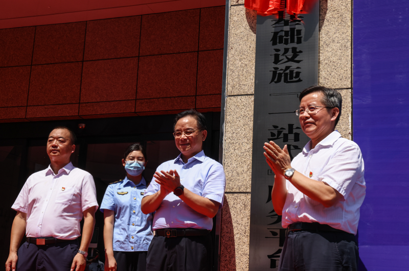 启动仪式后,与会人员前往赫山区龙岭电子产业园5G中心,观摩赫山区质量基础设施“一站式”服务平台运营情况。向曙光、瞿海共同为赫山区质量基础设施“一站式”服务平台揭牌。